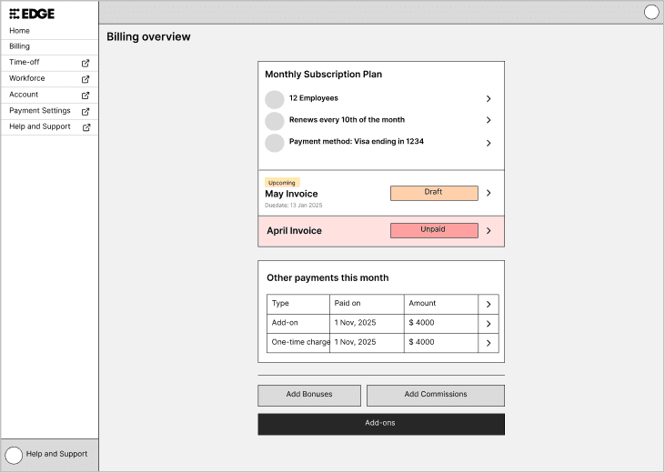 Over time, however, we discovered that this payroll ownership model significantly increased the complexity of the billing experience, making it harder for customers to clearly understand their monthly charges.