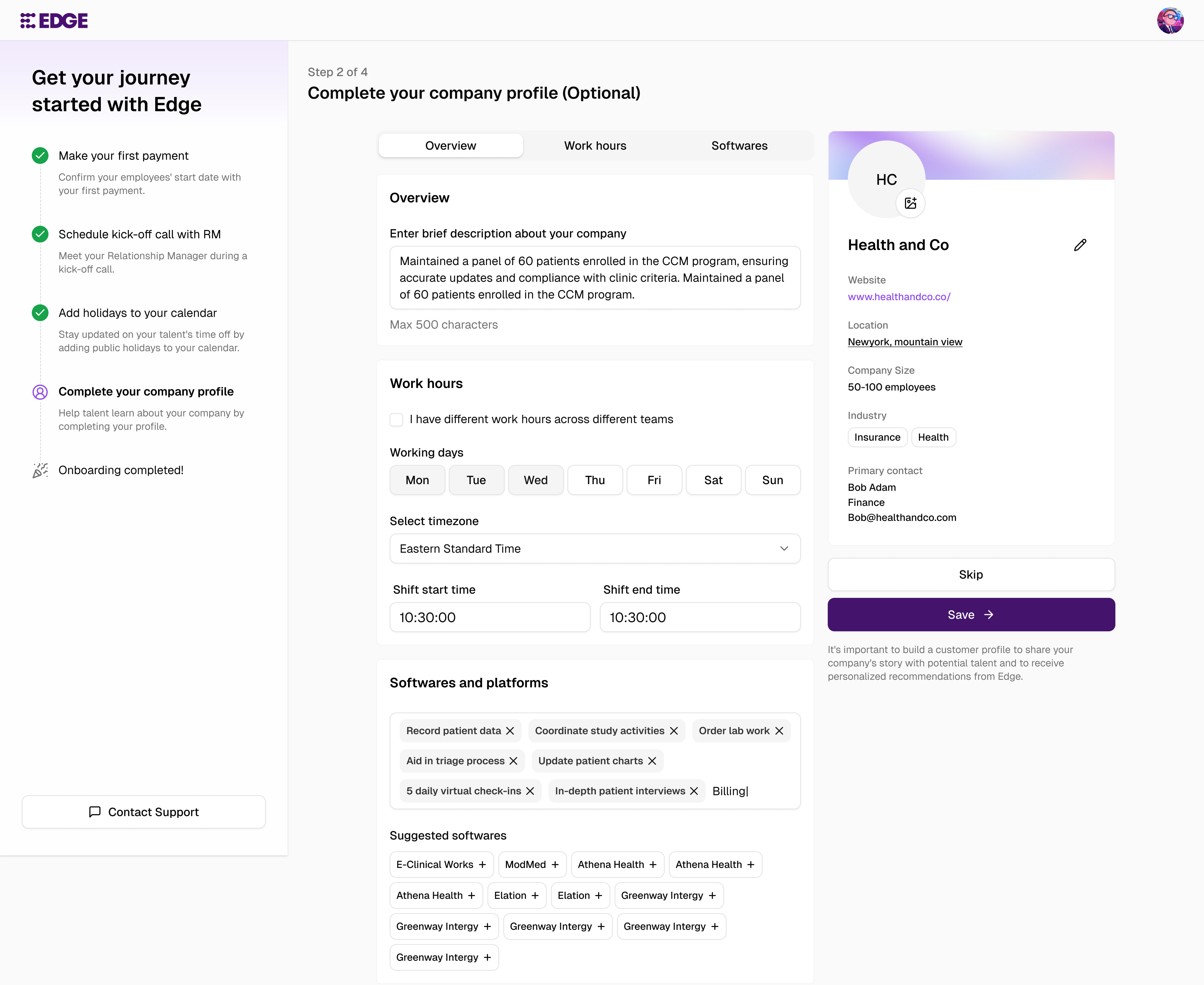 Added a few other items to onboarding like customer profile and holiday integrations.