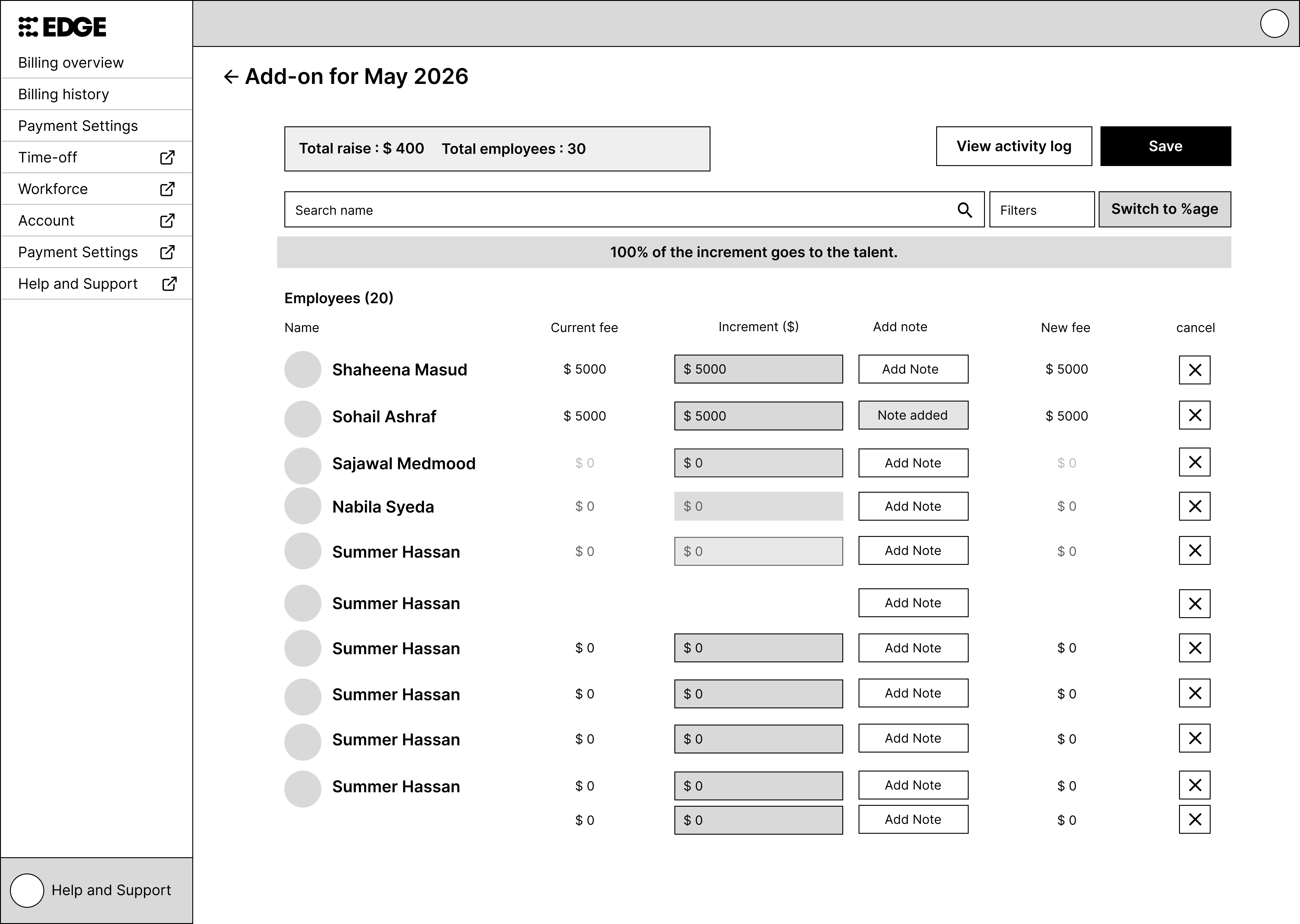 When we ask customer to edit payroll, that can get really confusing for them as our business does not allow them to look at actual salaries of the talent. We only show how much each talent is costing them.