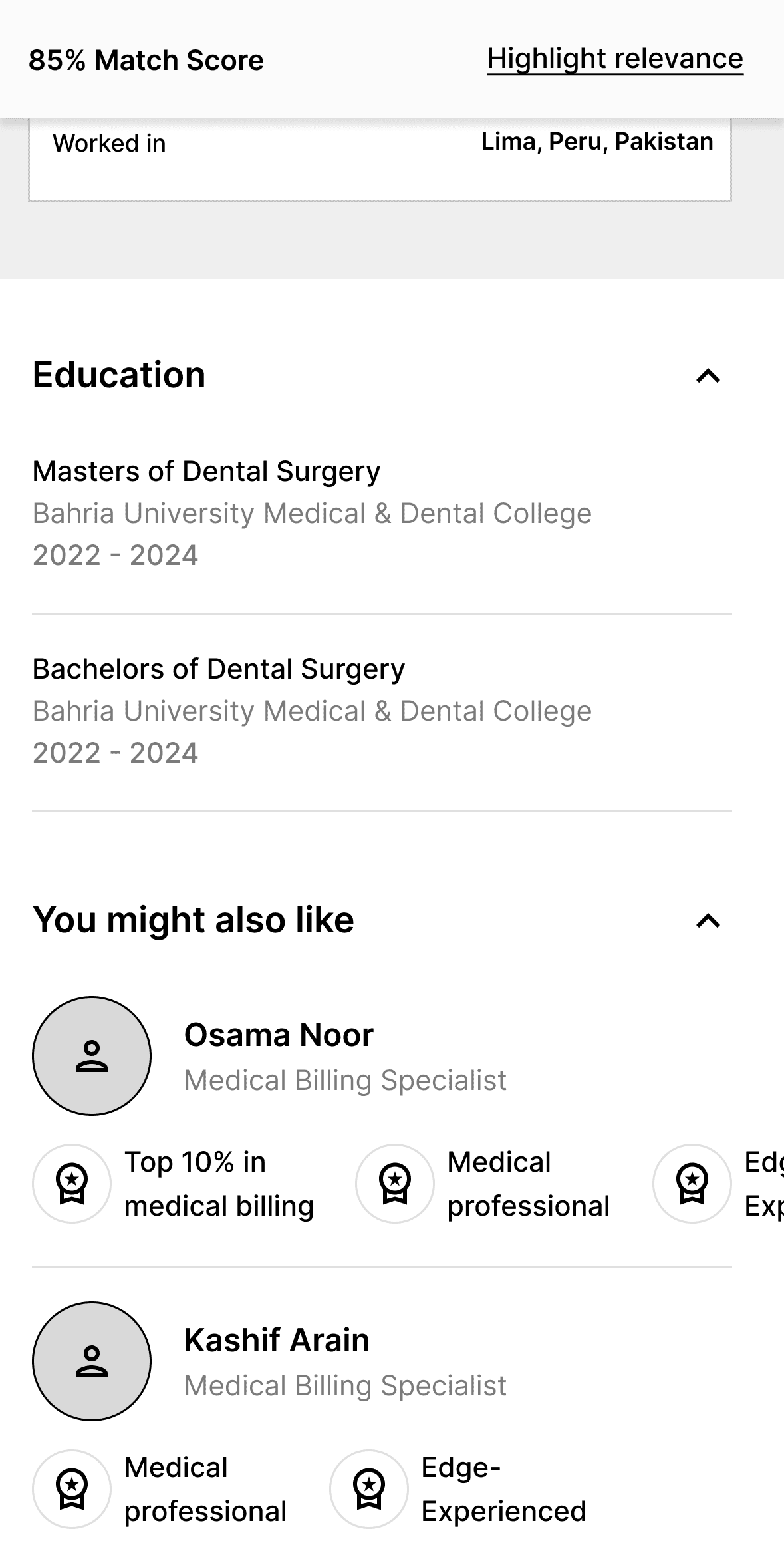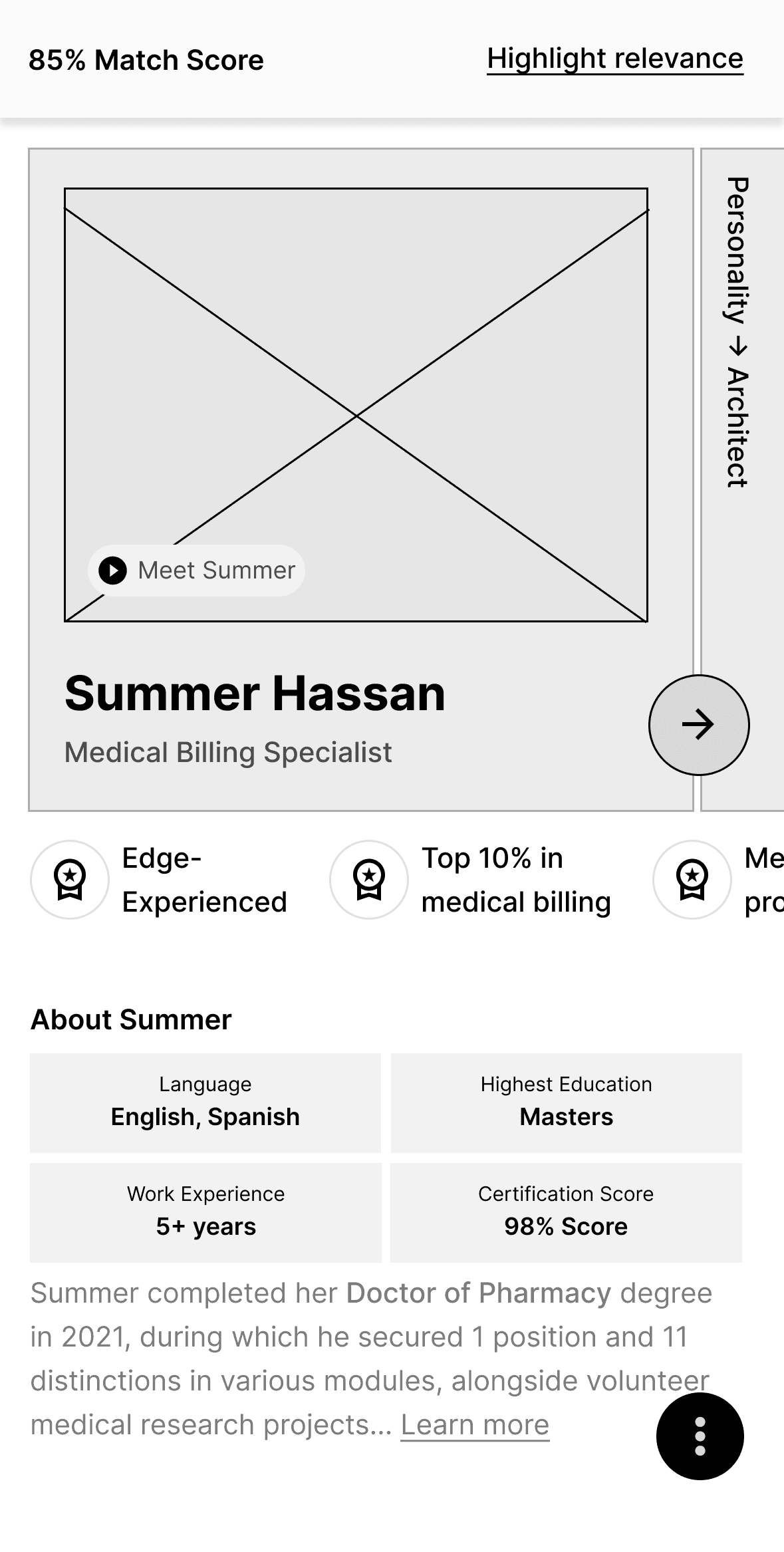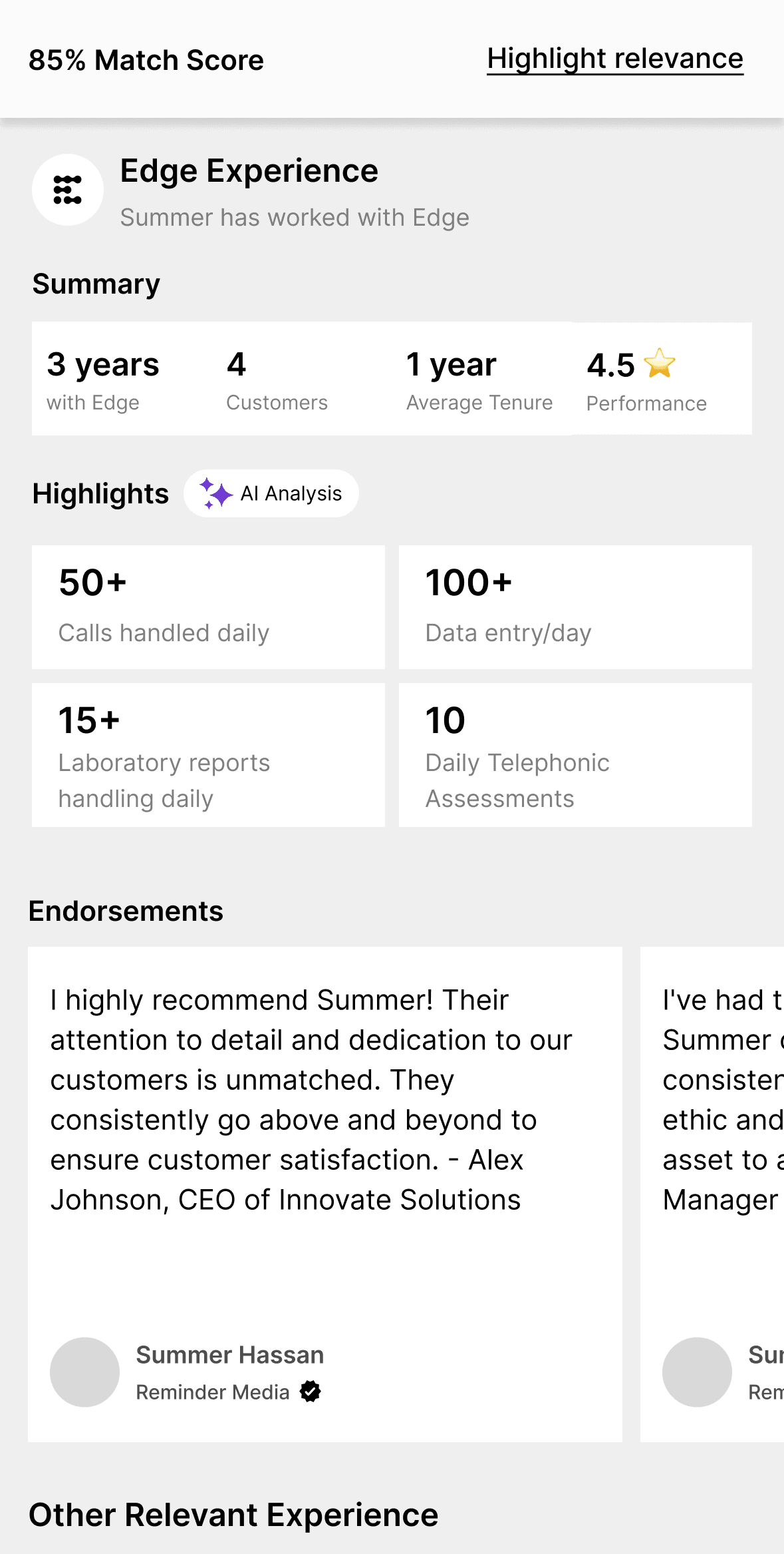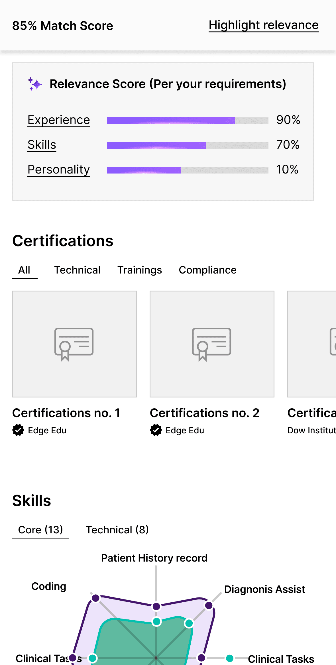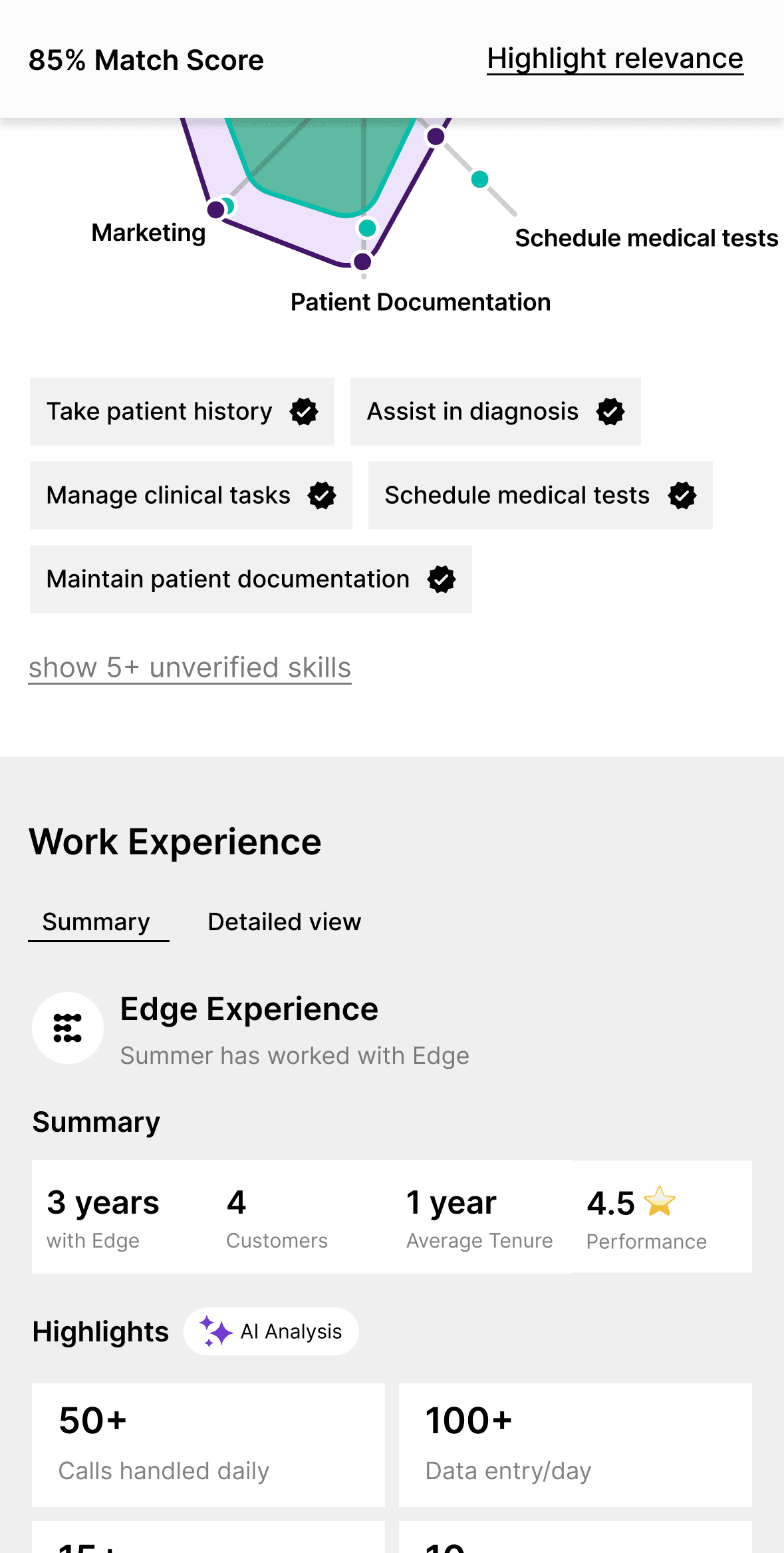 Enhance talent profile with the more data points that are more meaningful and easily scan-able for our busy customers.