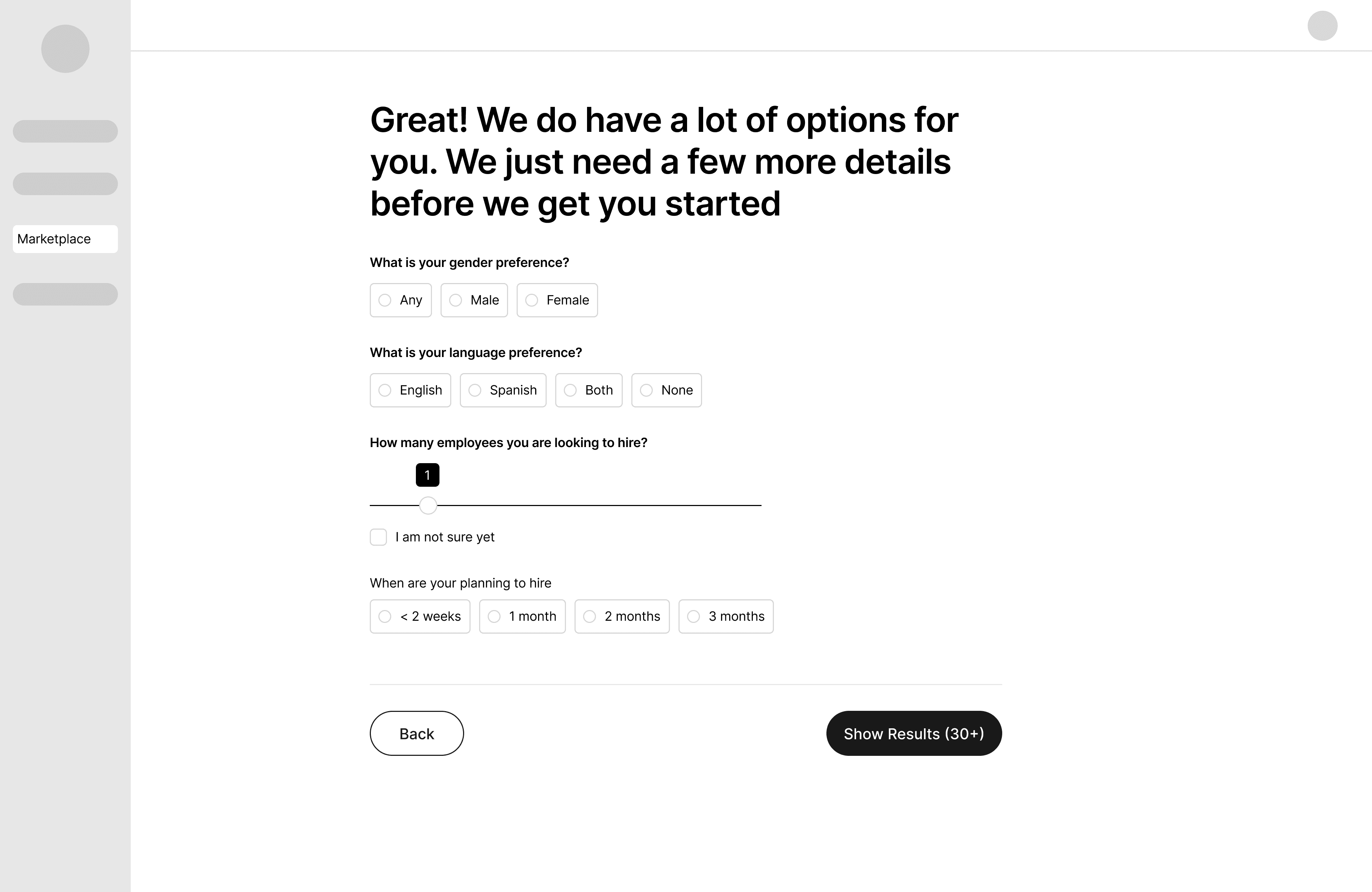 Open up wider talent network to the customers with options to browse and filter through.