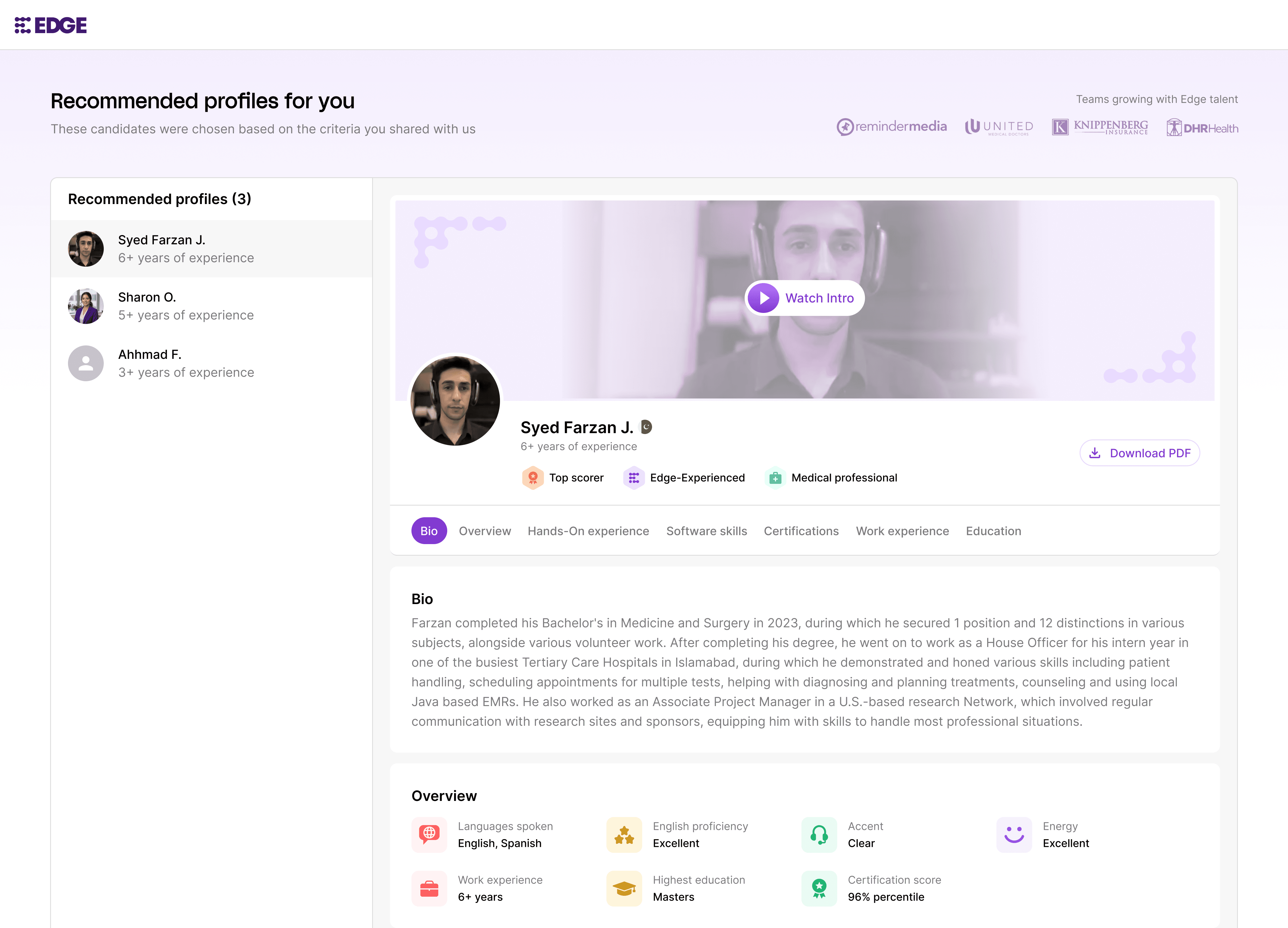 Video introduction was a huge addition which allowed customers to assess the candidate's communication before they went into the interviews with them.