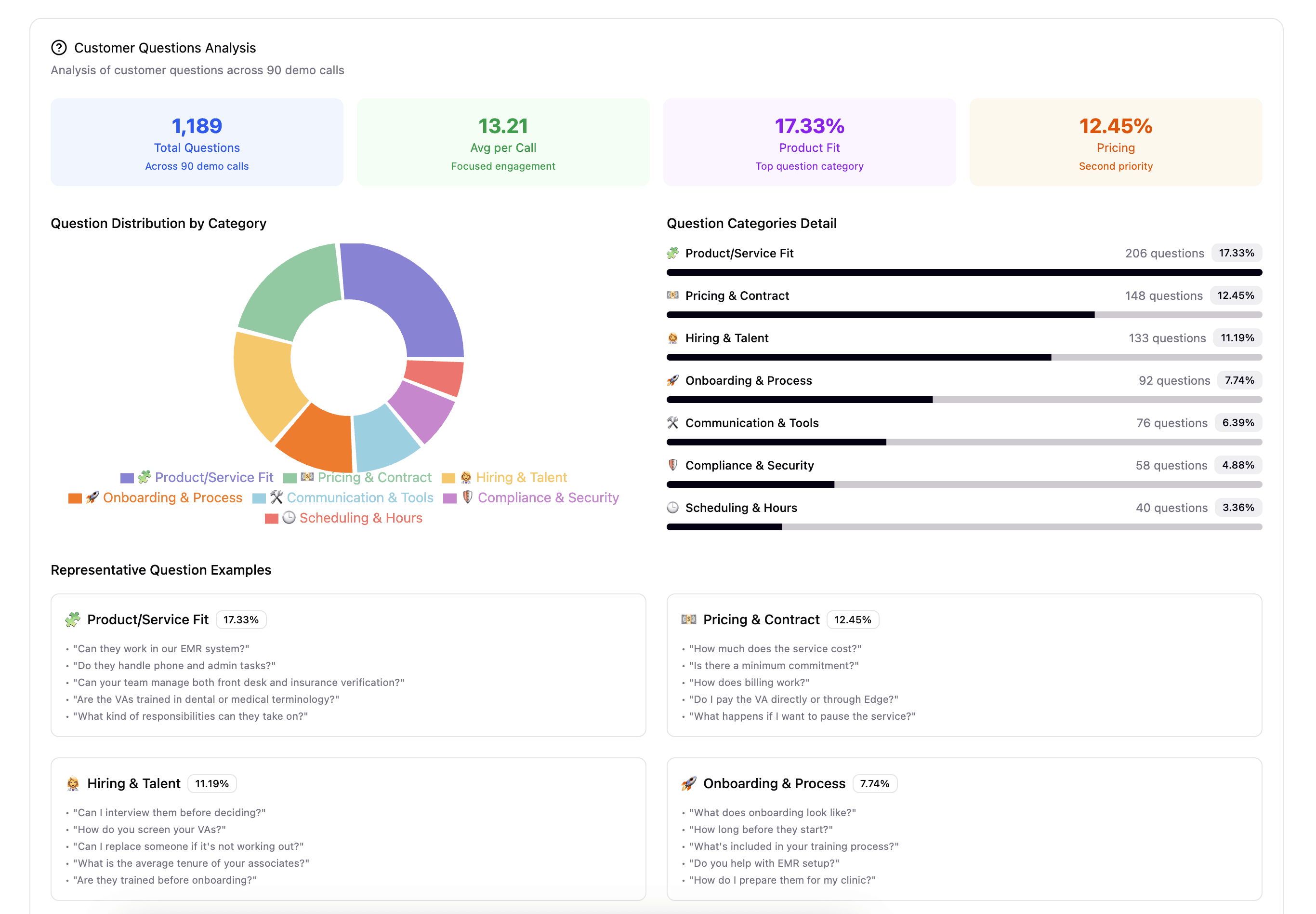 Sales kick-off call with the talent were analysed with AI to understand what type of questions customers pose to the talent.