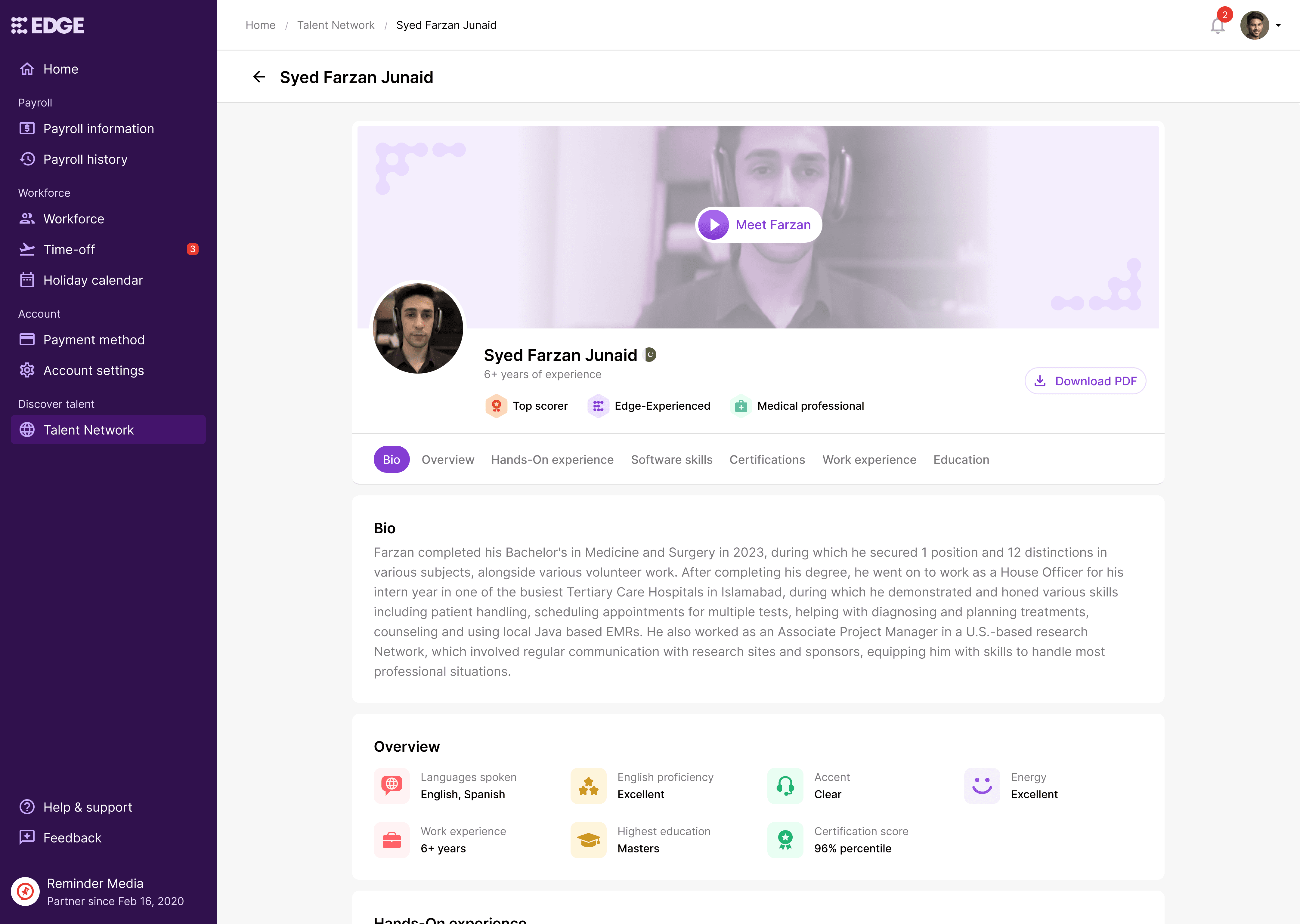 Talent marketplace for Edge customers