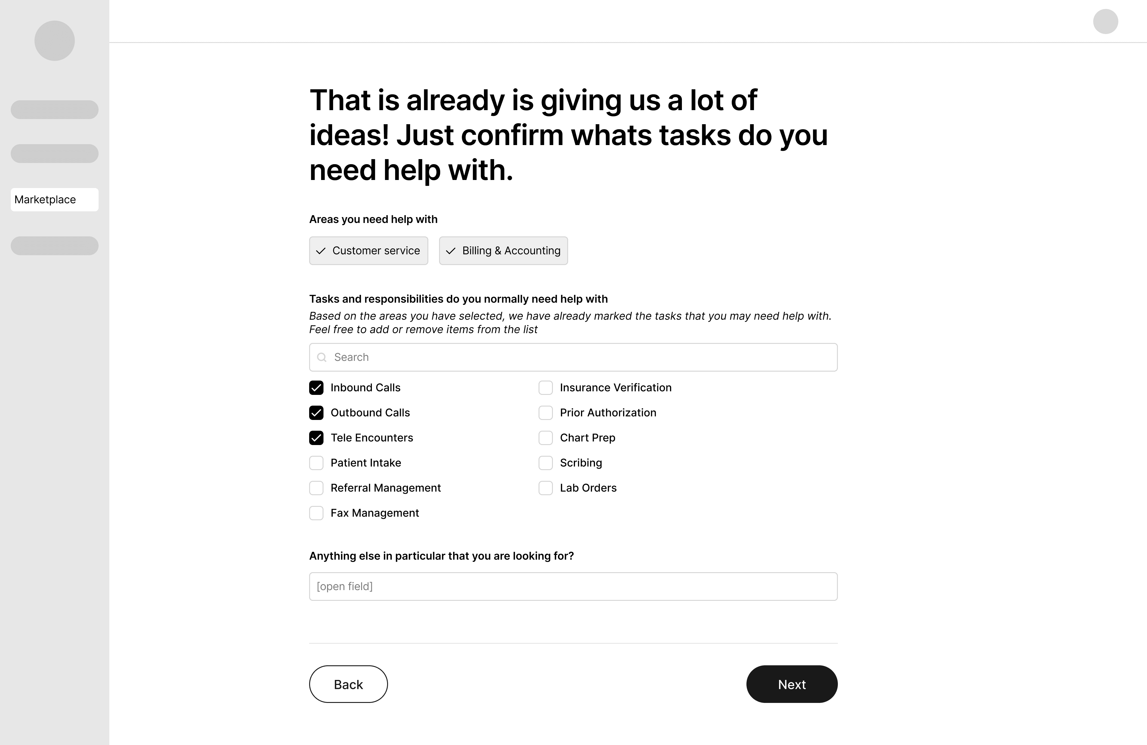 Feedback on the wireframes from customer facing team