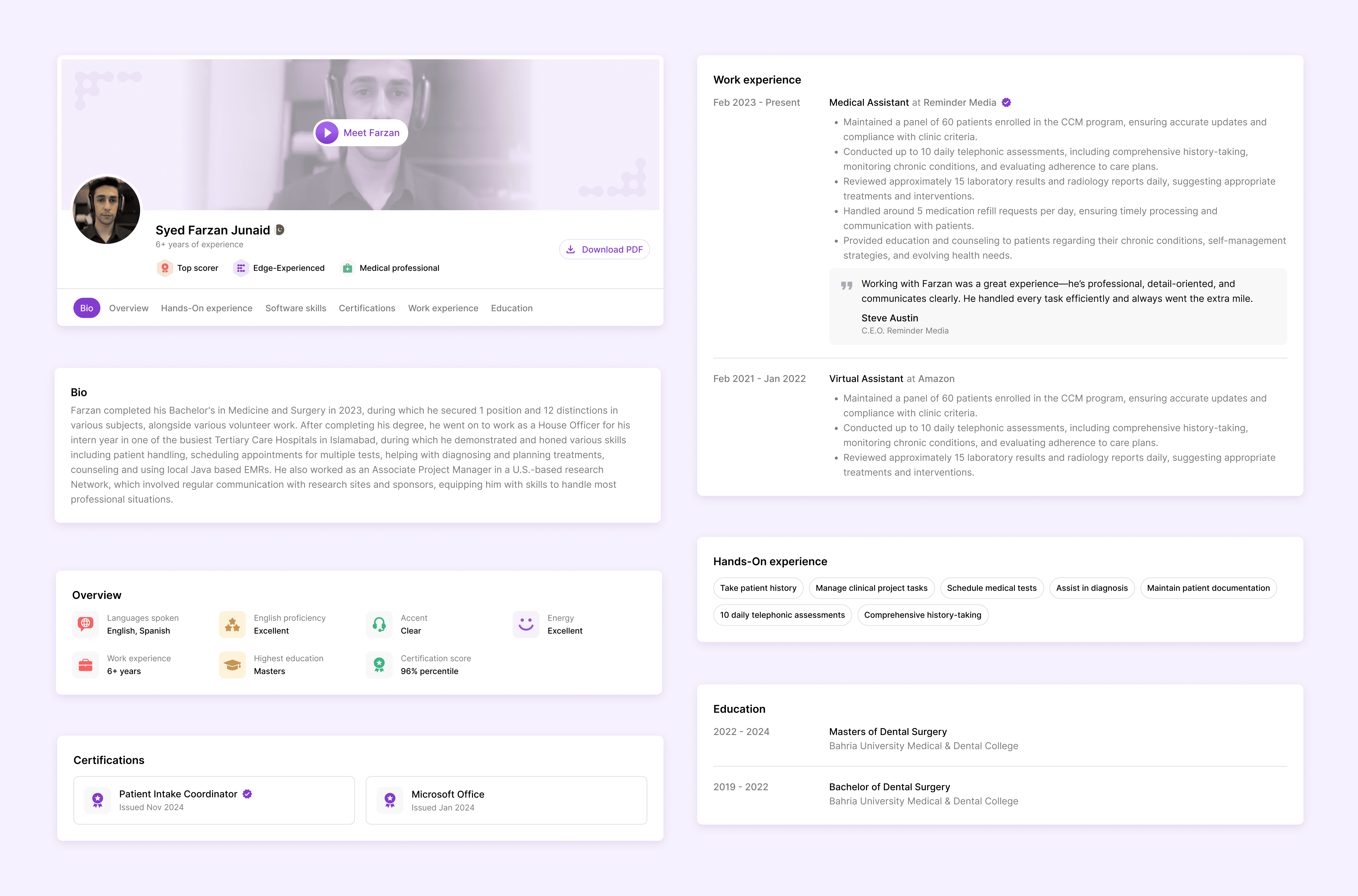 Sales rep will share the profiles via link and those profiles can be accessed over phone or web. These are interactive profiles with video and communication added here